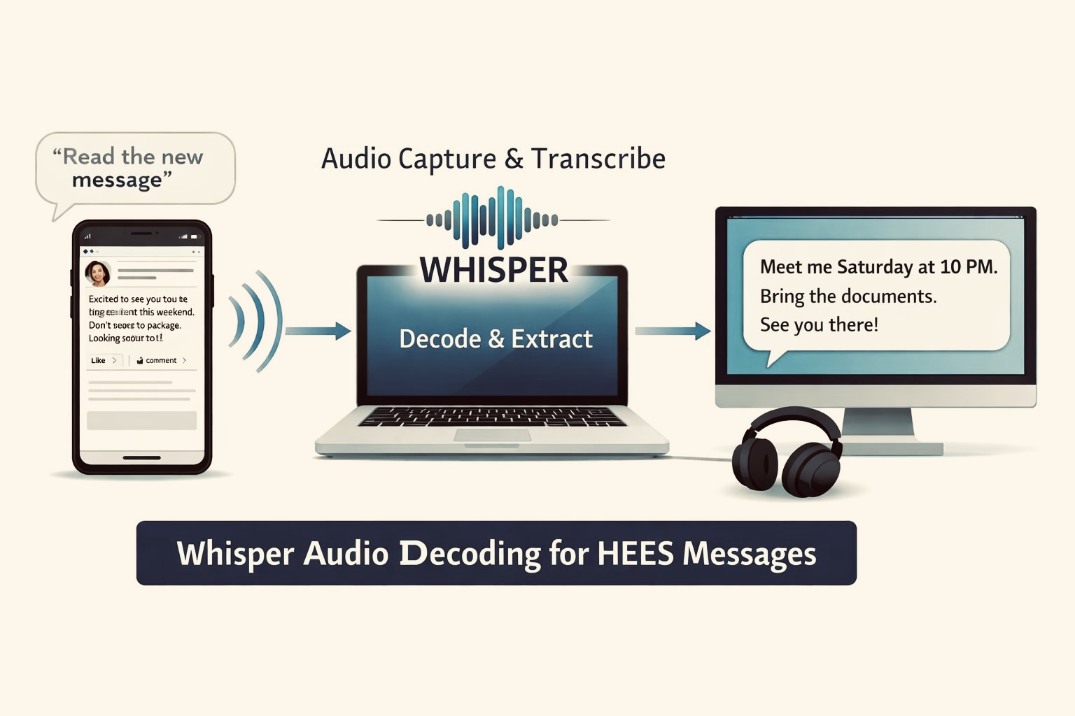 We discovered a method that not only supports narrative Sub-Lex and NLS-based generative encoding, but also leverages existing device ecosystems to deliver completely passive, undetectable decoding. It uses audio, particularly Bluetooth or device speech playback, to trigger HEES-aware listeners like Whisper.